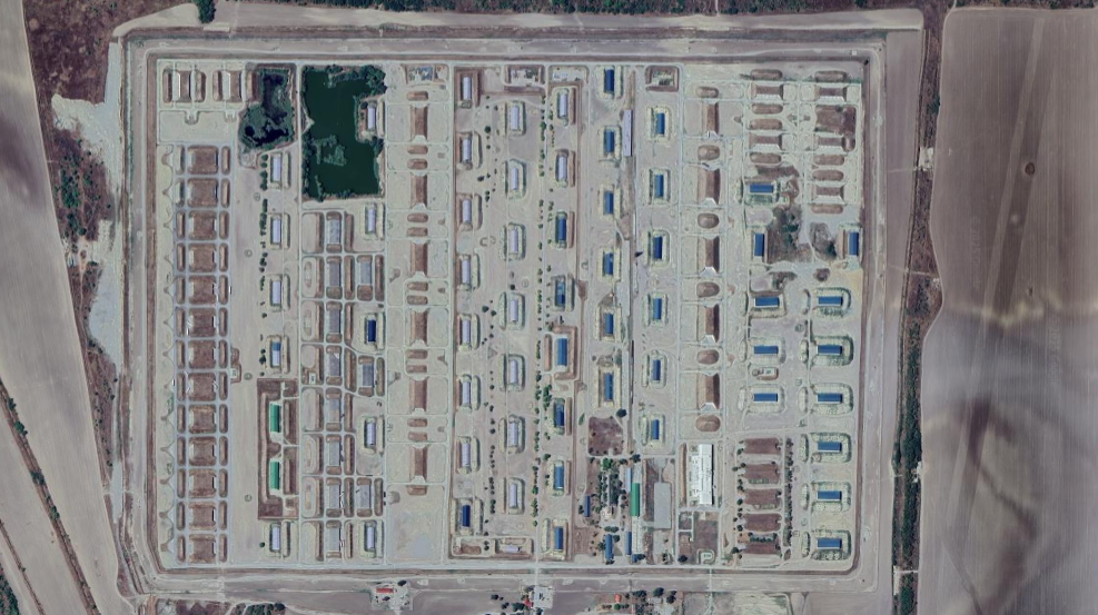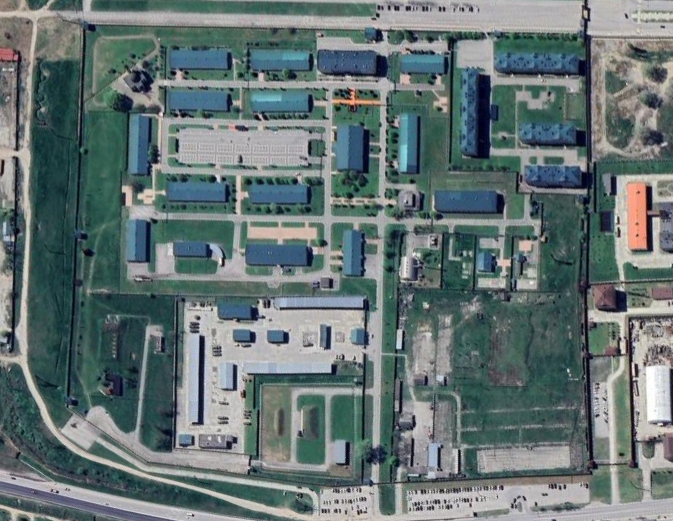 Military base and facilities west of Mozdok. Along with accommodation for servicemen, the territory includes an equipment storage building. Every structure is surrounded with defensive barriers.