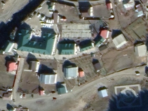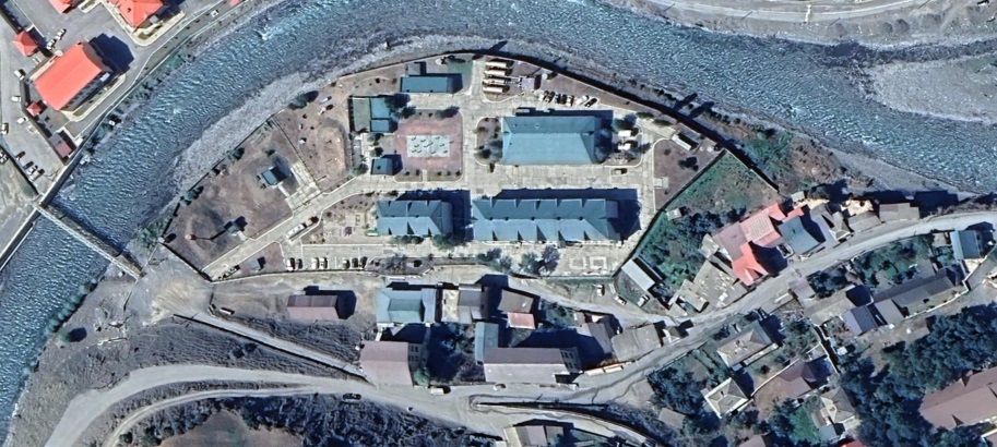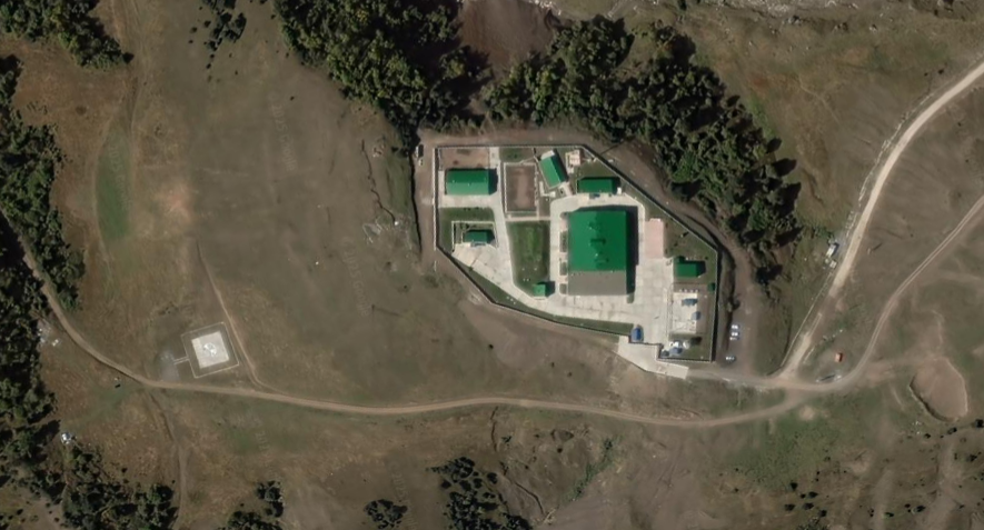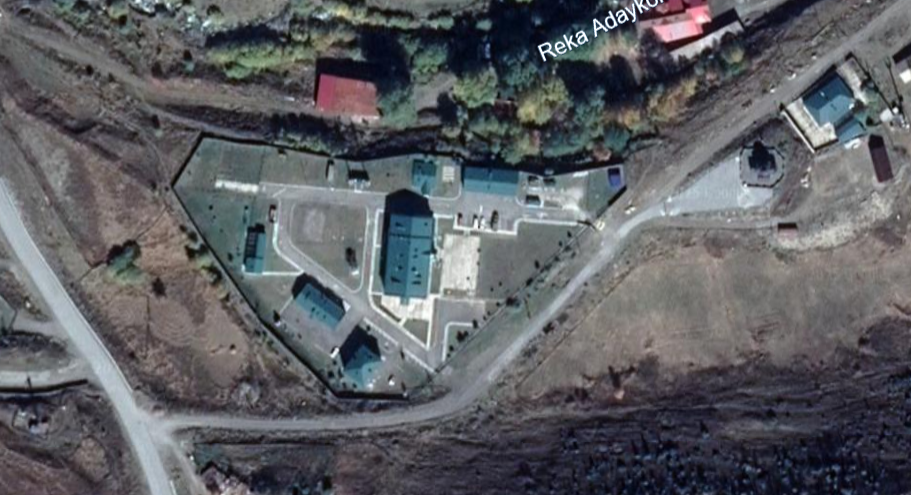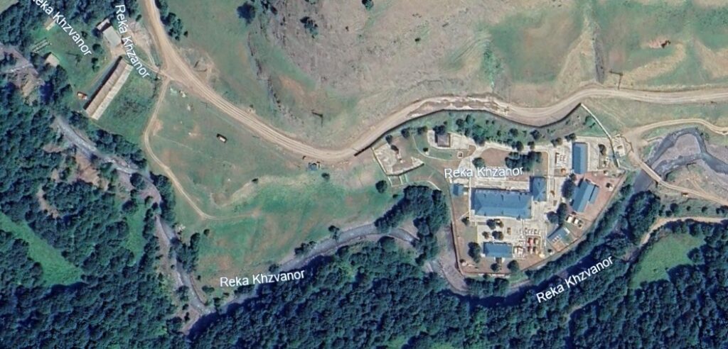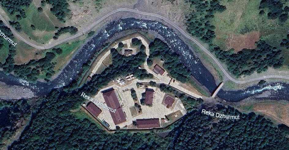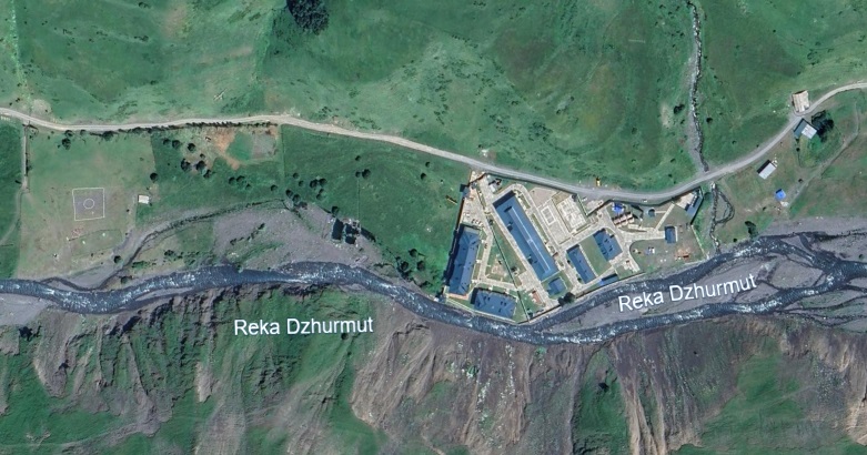 Military building and infrastructure located north of the Dariali crossing of the Russia-Georgia border. Until approximately 2008, the territory was surrounded by defensive fortifications and trenches. The base has a helipad to the south.