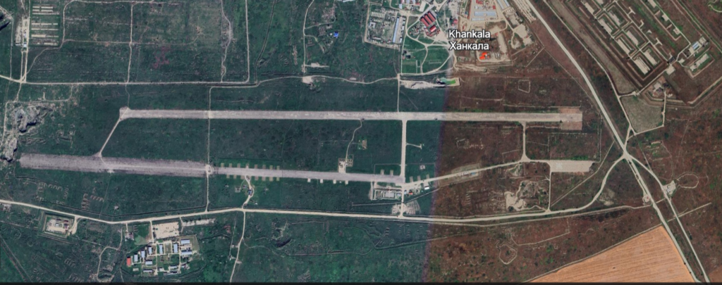 An airbase, army training ground, and military infrastructure located east of Grozny, Chechnya.