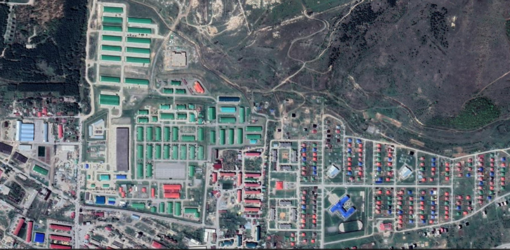 A military town in the town of Java, Java municipality. The satellite image dates back to 2020. Russia has deployed most of the Tskhinvali-based military equipment to the Ukraine war since 2022, and, therefore, the quantity of equipment shown in the image does not reflect the current situation.